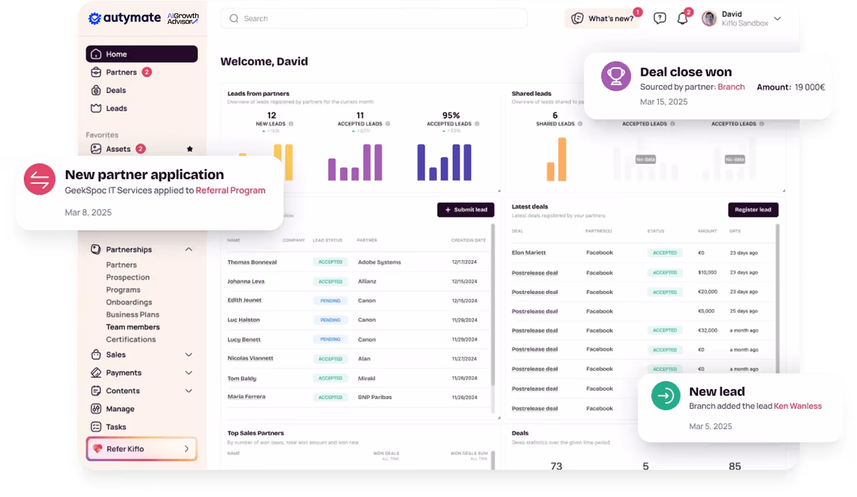 - Lead SharingReceive qualified leads and track them from first contact to close